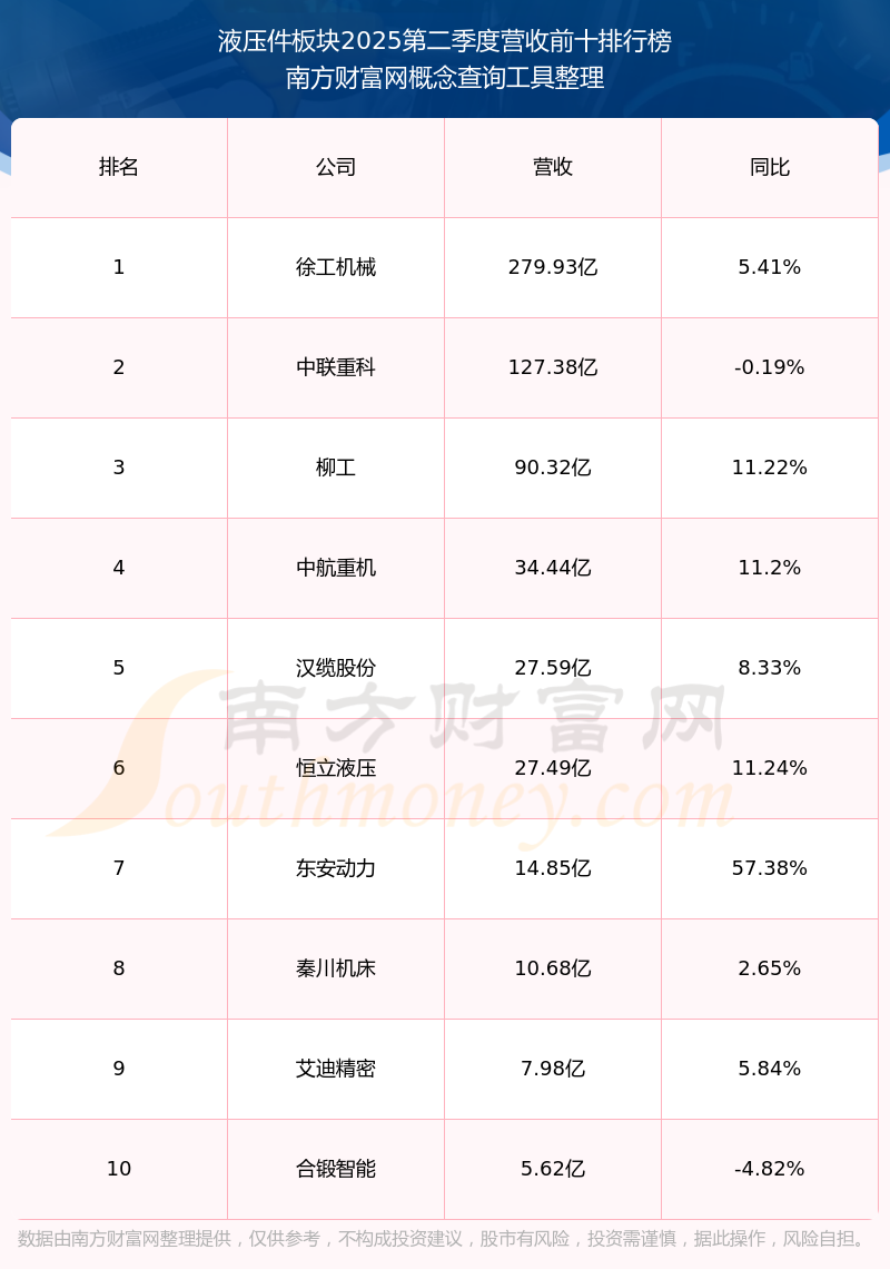 按照南方财富网概念查询工具统计,该股所属板块为液压件板块,该板块共有16只股票,艾迪精密2025第二季度营收在该板块中排名为第9名,该板块2025第二季度营收排名前十的股票如下表:
