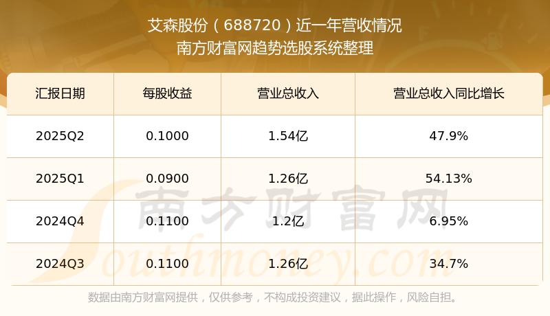 艾森股份2025年第二季度公司实现营业收入1.54亿元,同比47.9%;归母净利润921.82万元,同比47.98%。