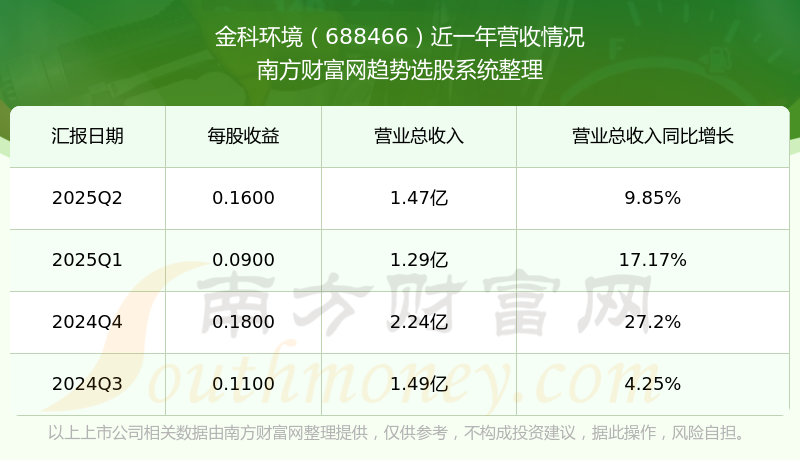 金科环境2025年第二季度显示,公司主营收入1.47亿元,同比9.85%;归母净利润1900.67万元,同比-16.94%;扣非净利润1695.97万元,同比-19.45%;