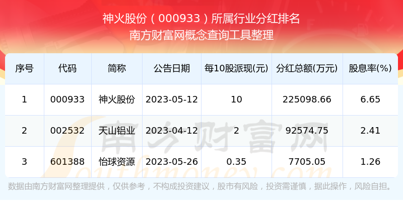 按照南方财富网趋势选股系统统计,神火股份所属行业为铝锭行业,铝锭行业分红排名情况如下表: