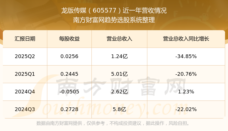 龙版传媒披露了2025年第二季度财报。报告显示,龙版传媒2025年第二季度实现营收1.24亿元,同比-34.85%;归母净利润1135.74万元,同比137.06%。