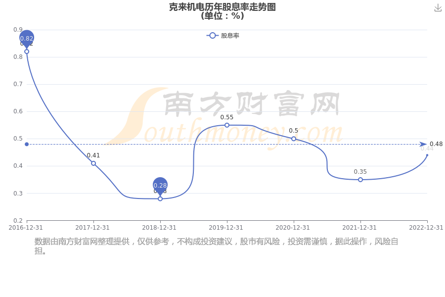 克来机电最新一次公布的分红方案为10派0.74元。本次权益分派股权登记日为2023年6月6日,除权除息日为2023年6月7日,派息日为2023年6月7日。