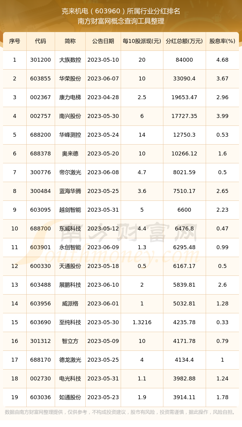 按照南方财富网趋势选股系统统计,克来机电所属行业为汽车零部件行业,汽车零部件行业分红排名情况如下表: