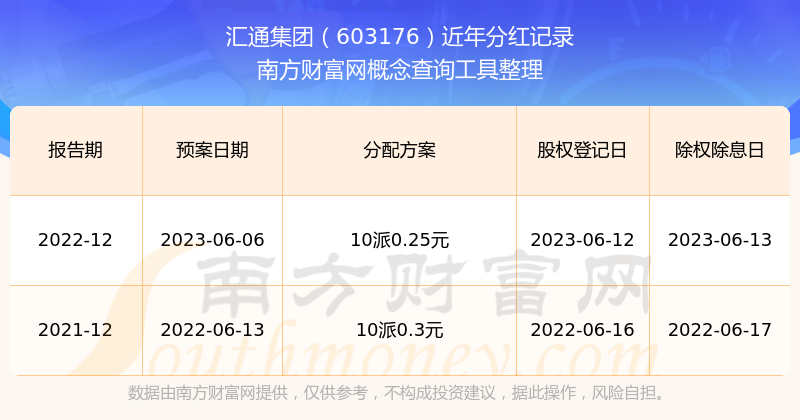汇通集团最新一次公布的分红方案:10派0.25元。