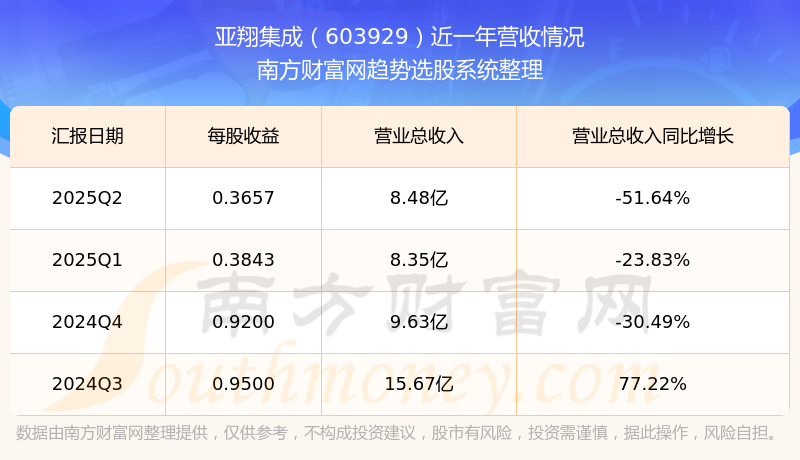 亚翔集成股票近一年营收情况如下表: