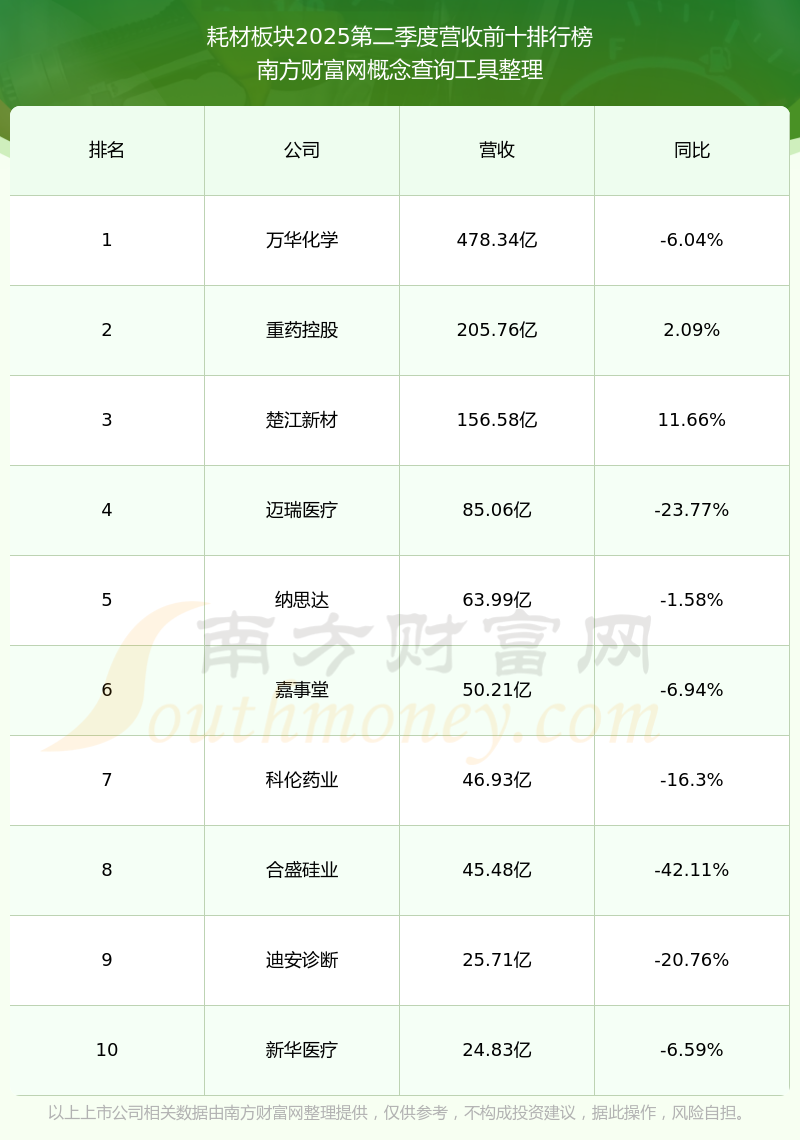 按照南方财富网概念查询工具统计,该股所属板块为耗材板块,该板块共有65只股票,赛科希德2025第二季度营收在该板块中排名为第65名,该板块2025第二季度营收排名前十的股票如下表: