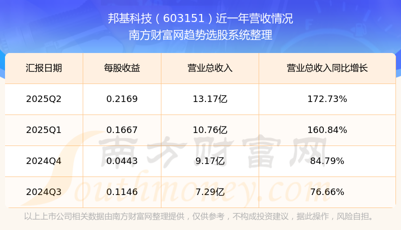 财报显示,2025年第二季度邦基科技营收13.17亿元,同比增长172.73%,净利润3644.72万元,同比增长1077.51%。