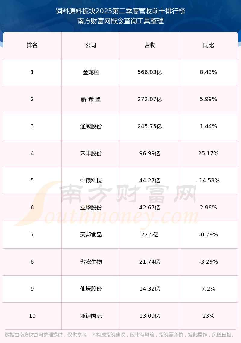 按照南方财富网概念查询工具统计,该股所属板块为饲料原料板块,该板块共有12只股票,邦基科技2025第二季度营收在该板块中排名为第12名,该板块2025第二季度营收排名前十的股票如下表: