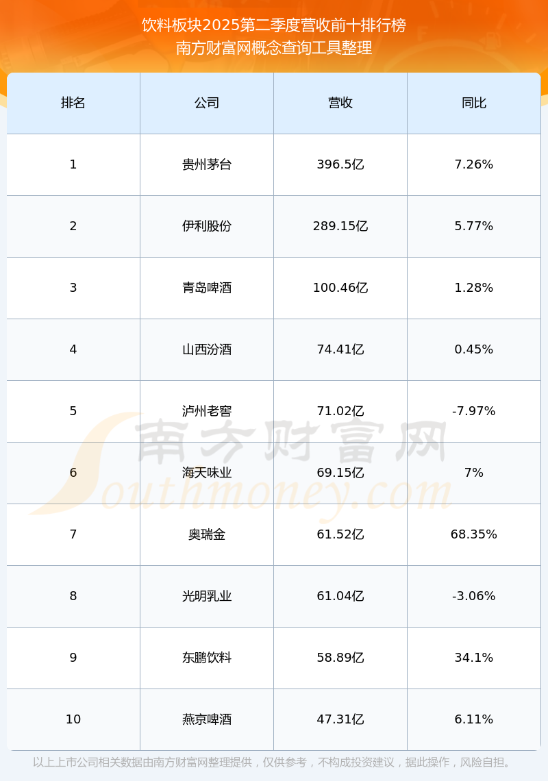 按照南方财富网概念查询工具统计,该股所属板块为饮料板块,该板块共有125只股票,东鹏饮料2025第二季度营收在该板块中排名为第9名,该板块2025第二季度营收排名前十的股票如下表: