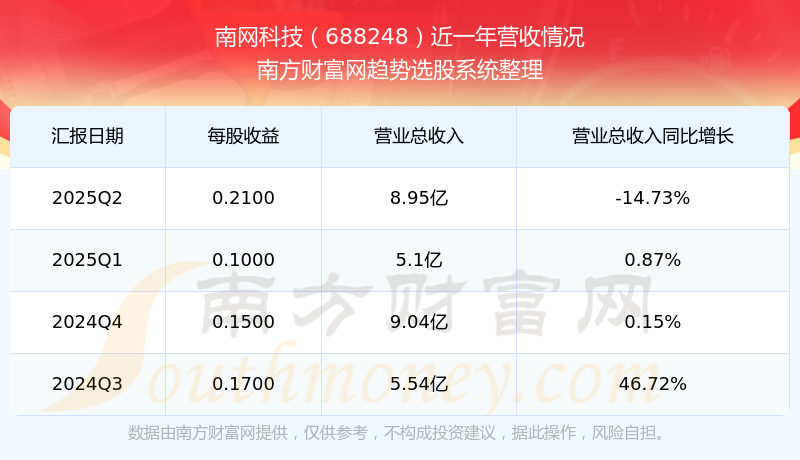 2025年第二季度,南网科技营收同比-14.73%,净利润同比-17.46%。