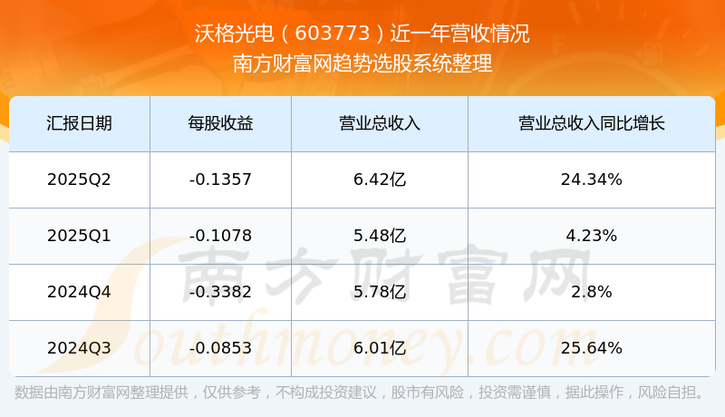 沃格光电股票近一年营收情况如下表: