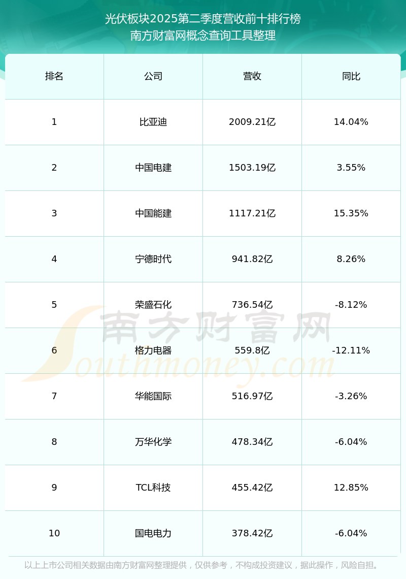 按照南方财富网概念查询工具统计,该股所属板块为光伏板块,该板块共有579只股票,中国核电2025第二季度营收在该板块中排名为第20名,该板块2025第二季度营收排名前十的股票如下表: