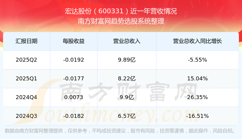宏达股份股票近一年营收情况如下表:
