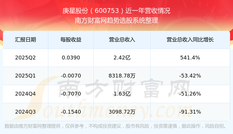 财报显示,2025年第二季度庚星股份营收2.42亿元,同比增长541.4%,净利润899.94万元,同比增长151.99%。