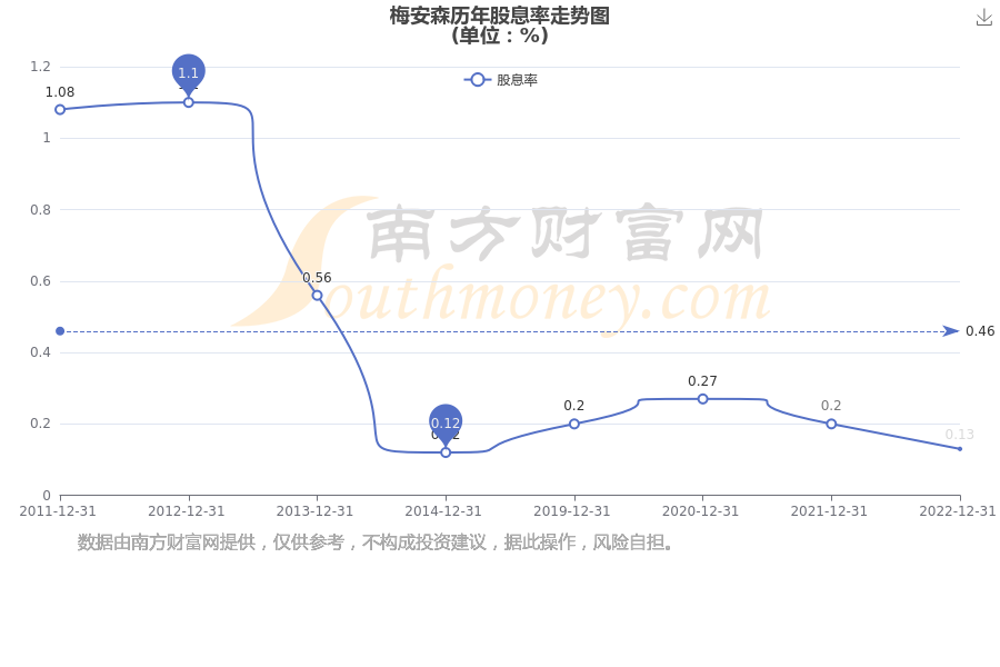近年梅安森年度股息率走势如下图: