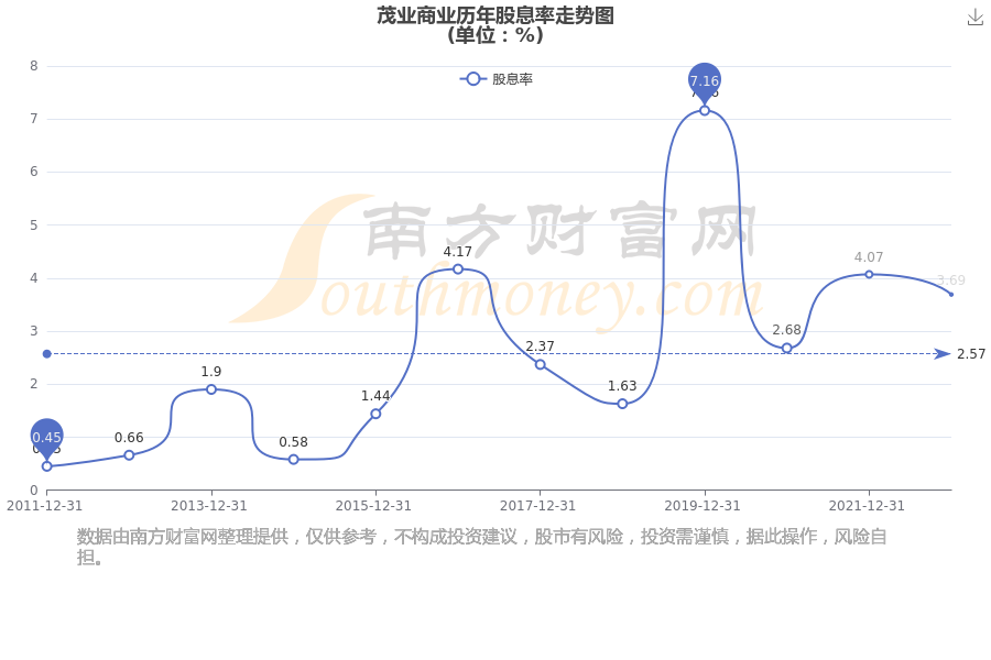 按照南方财富网趋势选股系统统计,茂业商业所属行业为商业百货行业,商业百货行业分红排名情况如下表: