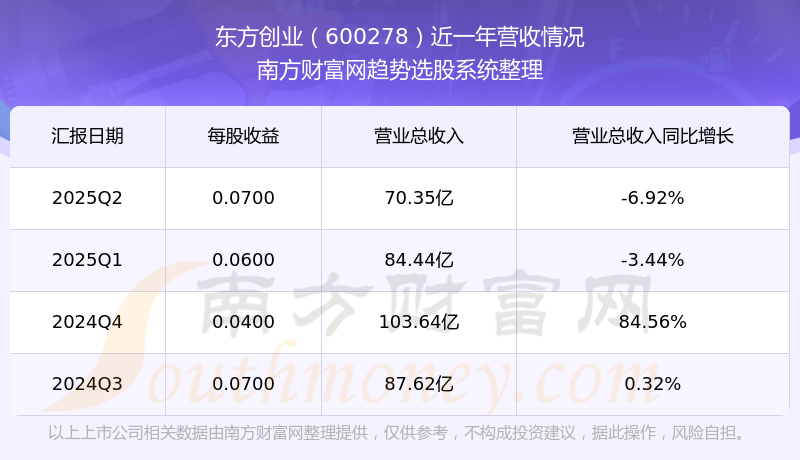 东方创业股票近一年营收情况如下表: