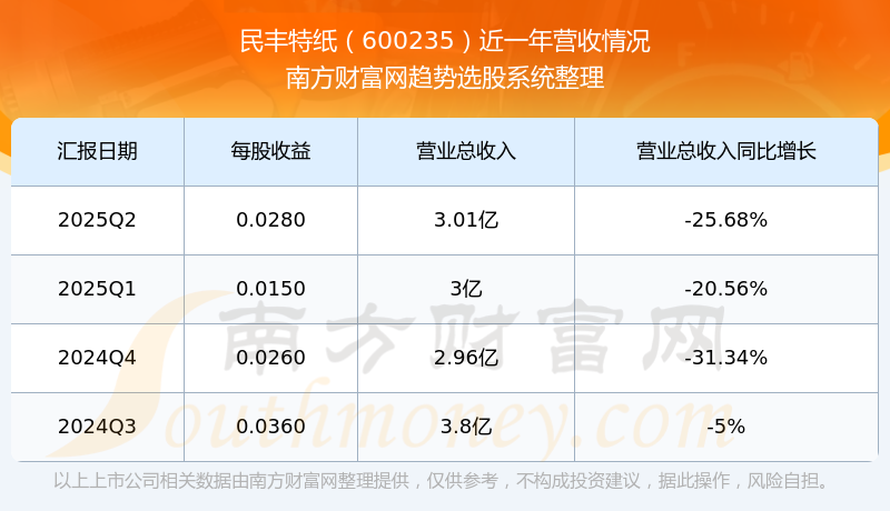 民丰特纸股票近一年营收情况如下表: