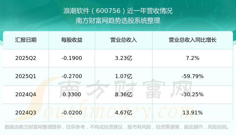 浪潮软件发布2025年第二季度财报。实现总营收3.23亿元,同比增长7.2%;扣非净利润同比增长2.28%至-5870.22万元。