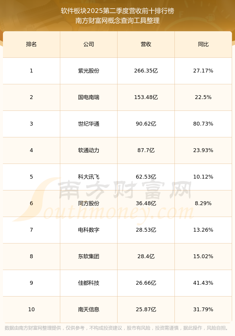 按照南方财富网概念查询工具统计,该股所属板块为软件板块,该板块共有245只股票,浪潮软件2025第二季度营收在该板块中排名为第113名,该板块2025第二季度营收排名前十的股票如下表: