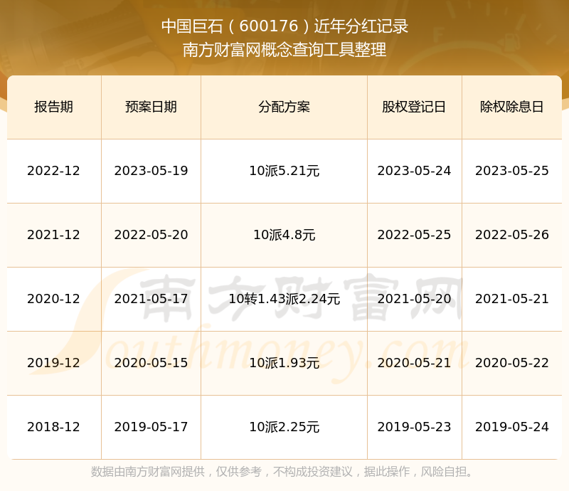 近年中国巨石分红情况如下表所示: