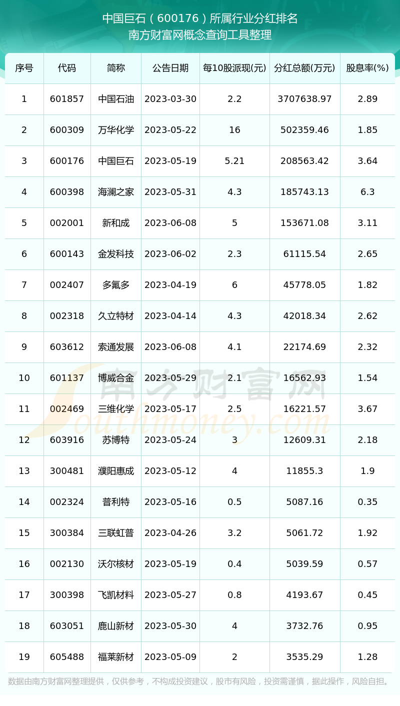 二、中国巨石600176行业分红排名