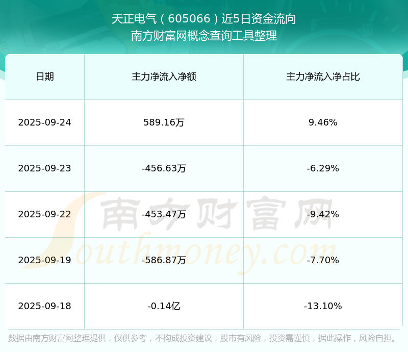 二、天正电气(605066)近期盘面、资金面情况