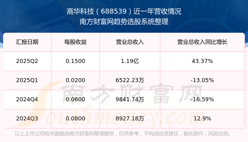 财报显示,2025年第二季度高华科技营收1.19亿元,同比增长43.37%,净利润2714.39万元,同比增长129.26%。