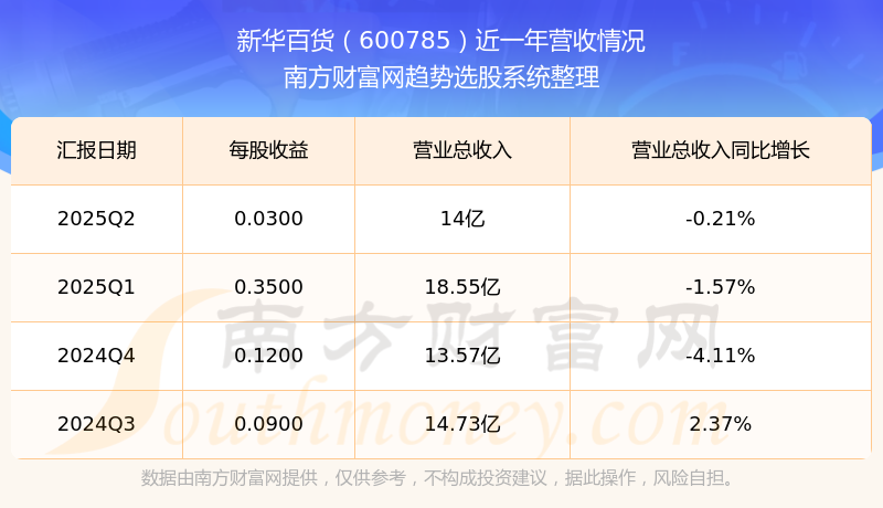 新华百货2025年第二季度显示,公司主营收入14亿元,同比-0.21%;归母净利润600.29万元,同比-5.78%;扣非净利润-404.13万元,同比-175.61%。