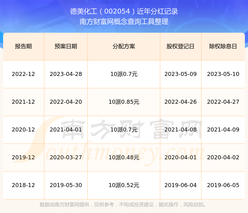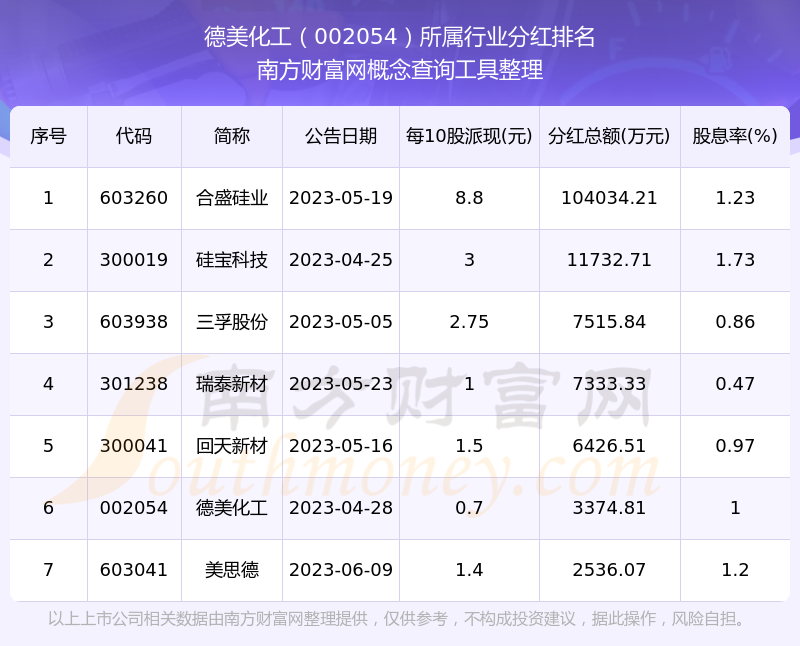 二、德美化工002054行业分红排名