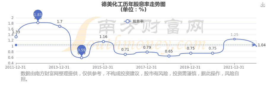 近年德美化工年度股息率走势如下图: