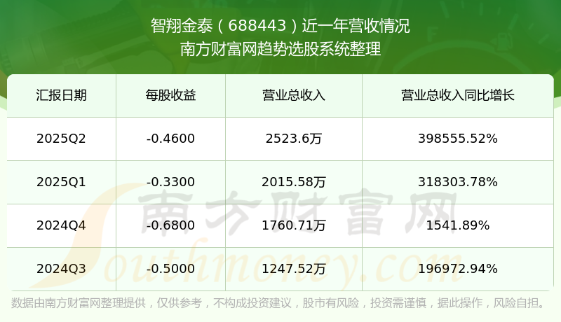 智翔金泰2025年第二季度显示,公司主营收入2523.6万元,同比398555.52%;归母净利润-1.69亿元,同比14.94%;扣非净利润-1.72亿元,同比13.7%;