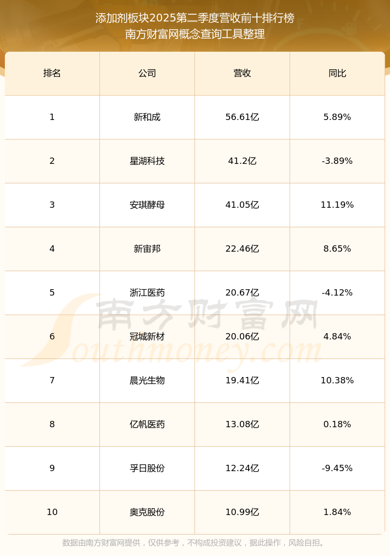 按照南方财富网概念查询工具统计,该股所属板块为添加剂板块,该板块共有21只股票,华盛锂电2025第二季度营收在该板块中排名为第20名,该板块2025第二季度营收排名前十的股票如下表: