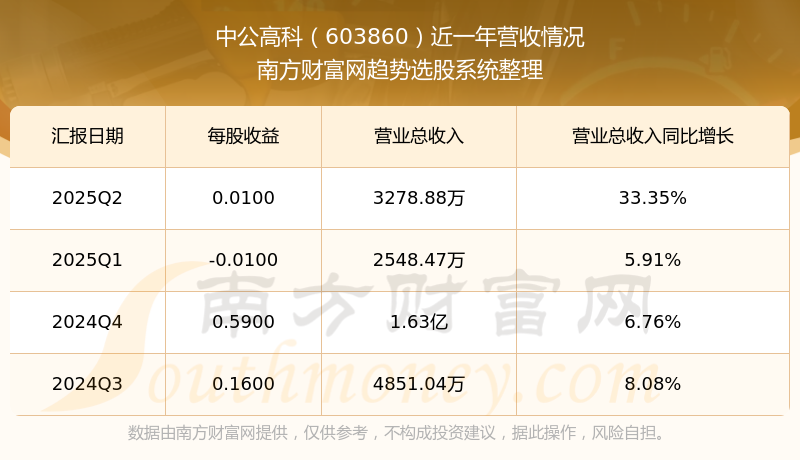 在2025年第二季度,中公高科的业绩表现,主营业务收入达到3278.88万元,实现了33.35%的同比增长率。同时,公司归母净利润录得4.46万元,同比增长106.47%。