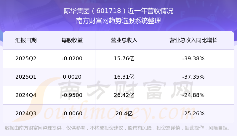 际华集团2025年第二季度公司实现营业收入15.76亿元,同比-39.38%;归母净利润-8642.79万元,同比-1242.14%。