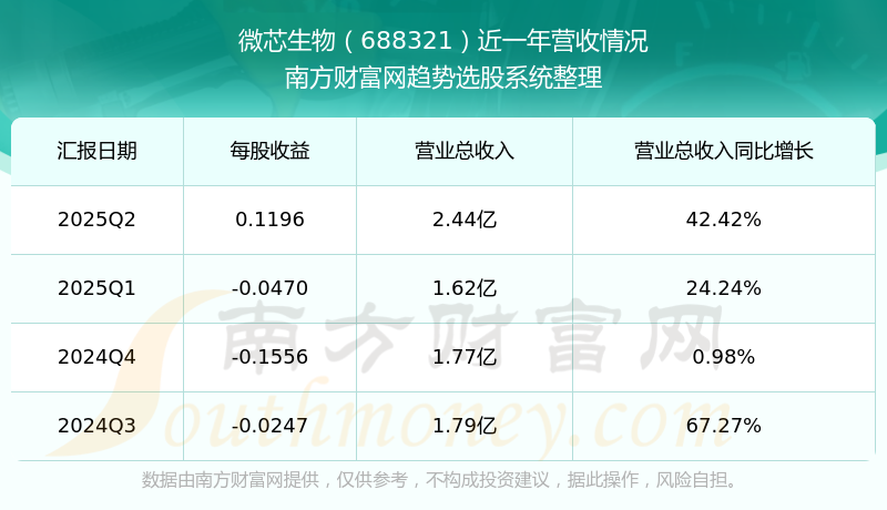 微芯生物2025年第二季度显示,公司主营收入2.44亿元,同比42.42%;归母净利润4874.69万元,同比314.73%;扣非净利润4490.36万元,同比278.17%。