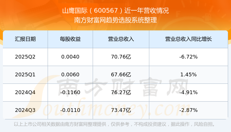 山鹰国际发布2025年第二季度财报。实现总营收70.76亿元,同比增长-6.72%;扣非净利润同比增长76.85%至-2144.94万元。