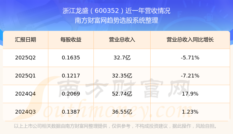 浙江龙盛股票近一年营收情况如下表: