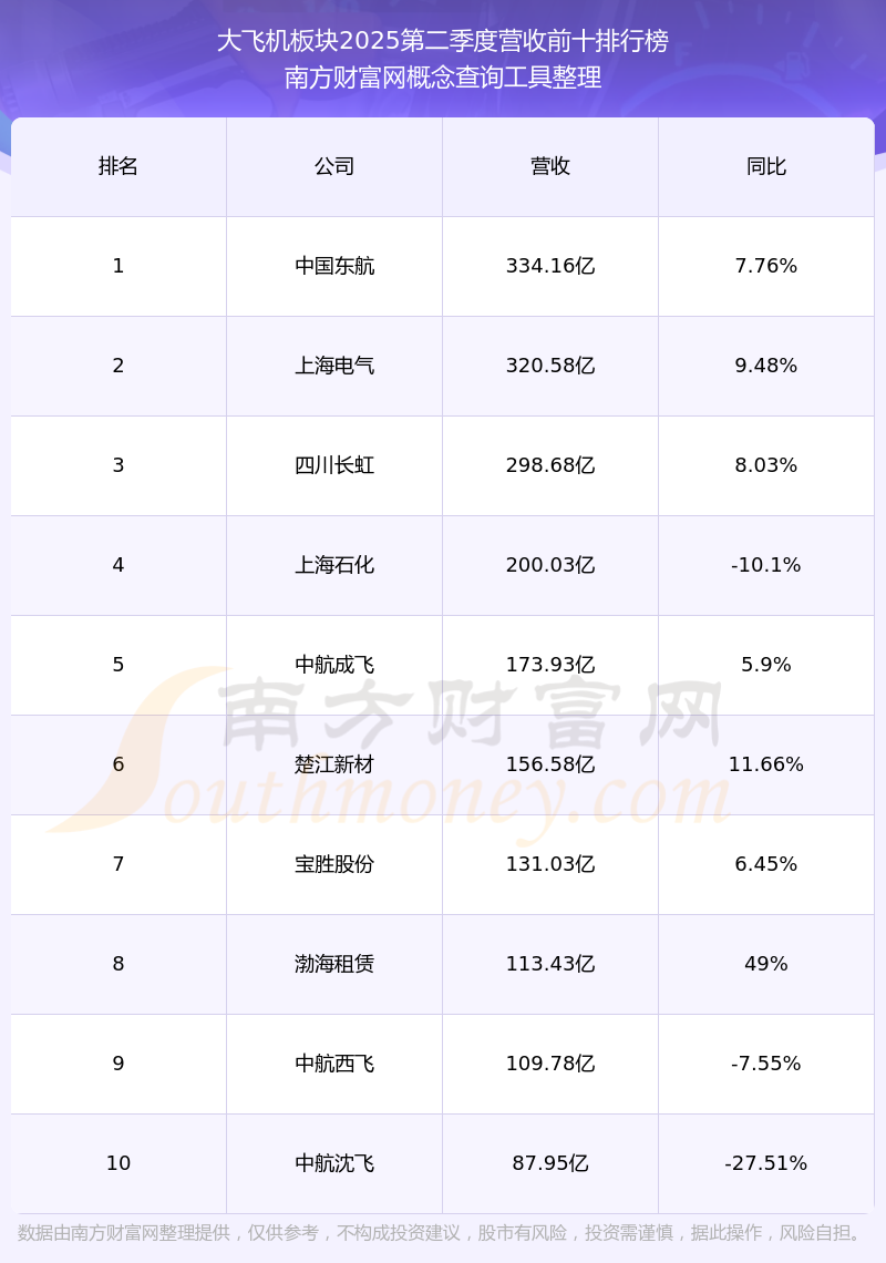 按照南方财富网概念查询工具统计,该股所属板块为大飞机板块,该板块共有162只股票,中国东航2025第二季度营收在该板块中排名为第1名,该板块2025第二季度营收排名前十的股票如下表: