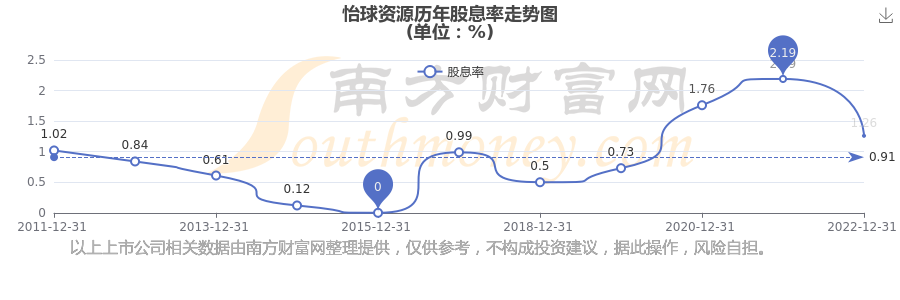 近年怡球资源分红情况如下表所示: