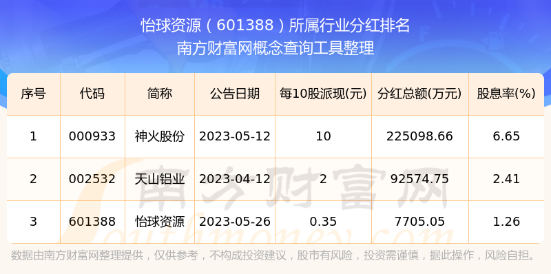 二、怡球资源601388行业分红排名