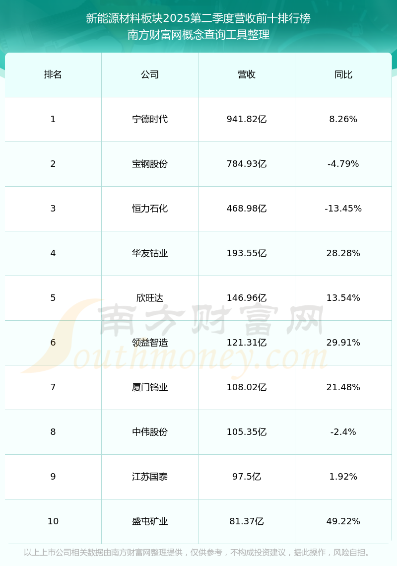 按照南方财富网概念查询工具统计,该股所属板块为新能源材料板块,该板块共有77只股票,中信博2025第二季度营收在该板块中排名为第77名,该板块2025第二季度营收排名前十的股票如下表: