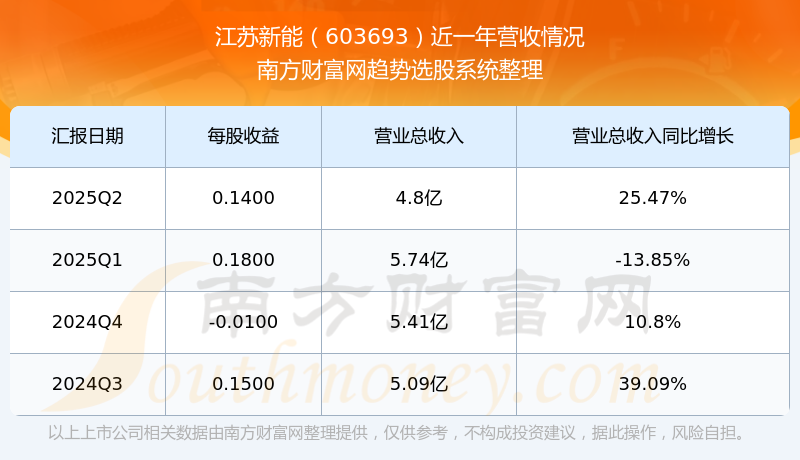 江苏新能2025年第二季度财报显示,公司主营收入4.8亿元,同比25.47%;归母净利润1.18亿元,同比181.56%;扣非净利润1.06亿元,同比200.04%;