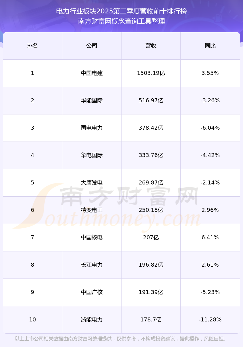 按照南方财富网概念查询工具统计,该股所属板块为电力行业板块,该板块共有93只股票,江苏新能2025第二季度营收在该板块中排名为第71名,该板块2025第二季度营收排名前十的股票如下表:
