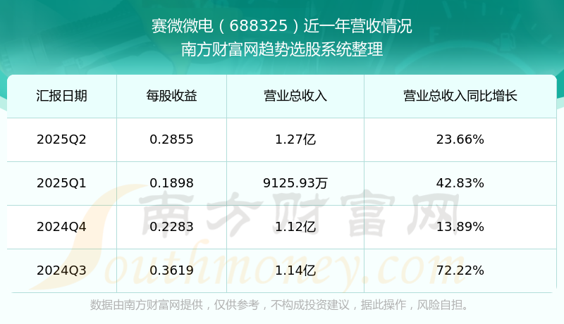 赛微微电(688325)披露2025年第二季度报告,报告期实现营收1.27亿元,同比23.66%;归母净利润2373.35万元,同比3.79%;扣非净利润2175.5万元,同比1.56%;基本每股收益0.29元。