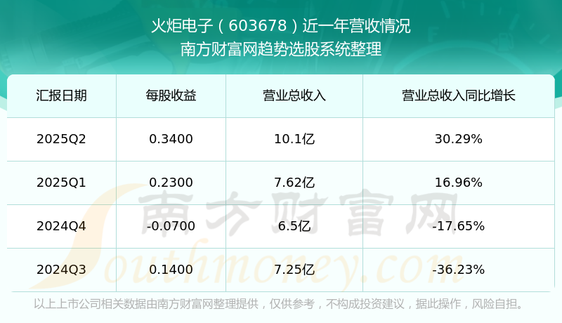 火炬电子股票近一年营收情况如下表: