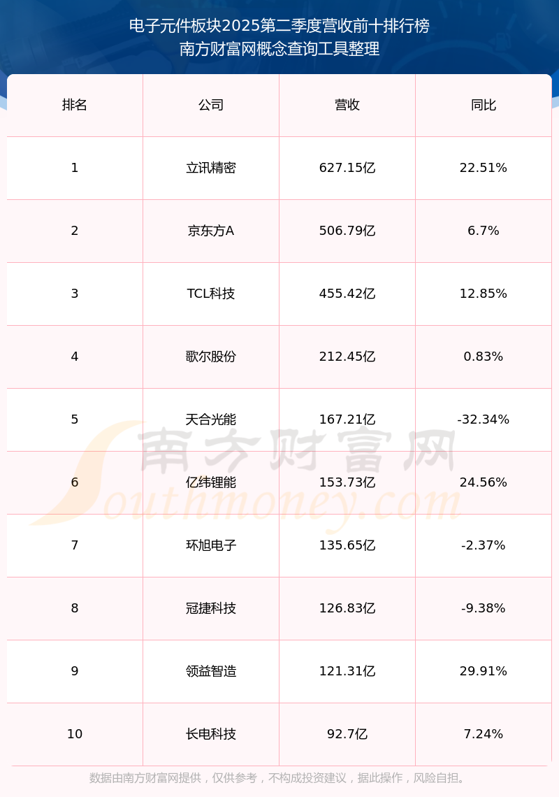 按照南方财富网概念查询工具统计,该股所属板块为电子元件板块,该板块共有367只股票,火炬电子2025第二季度营收在该板块中排名为第116名,该板块2025第二季度营收排名前十的股票如下表:
