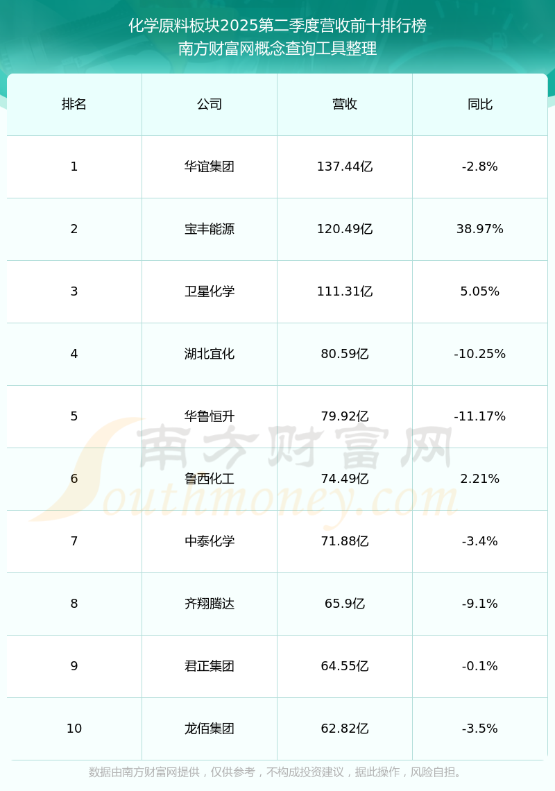 按照南方财富网概念查询工具统计,该股所属板块为化学原料板块,该板块共有110只股票,鼎龙科技2025第二季度营收在该板块中排名为第91名,该板块2025第二季度营收排名前十的股票如下表: