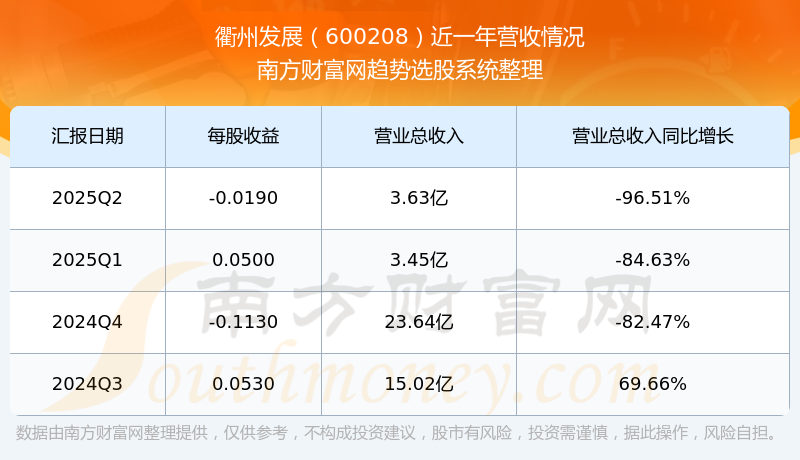 2025年第二季度,衢州发展营收同比-96.51%,净利润同比-114.12%。