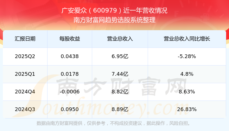 财报显示,2025年第二季度广安爱众营收6.95亿元,同比增长-5.28%,净利润5518.66万元,同比增长-40.25%。